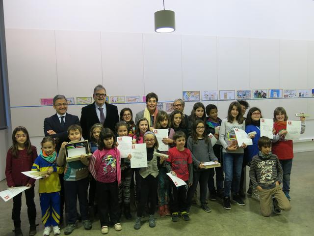 Els nens i les nenes de l’Escola Municipal de Belles Arts reben els premis del concurs de dibuix de Nadales de l’EMU