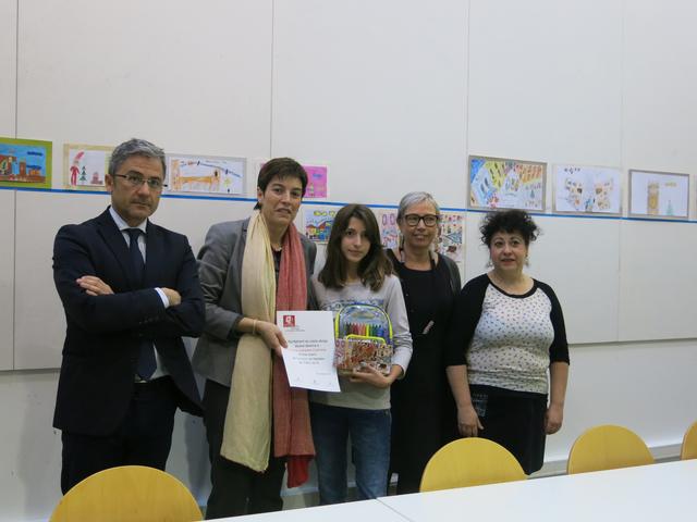 La tinenta d’alcalde i presidenta de l’Empresa Municipal d’Urbanisme, Marta Camps, i el tinent d’alcalde i regidor del Centre Històric, Fèlix Larrosa, acompanyats de la directora de l'Escola Municipal de Belles Arts Leandre Cristòfol, Marta Pallarès, han presidit aquesta tarda el lliurament dels premis del concurs de dibuix de Nadales que va convocar l’EMU, en el qual hi han participat 23 nens i nenes, entre 7 i 13 anys, del taller Expressió Artística de l’Escola Municipal de Belles Arts. La iniciativa, que s’engloba en el marc del Pla de Barris del Centre Històric, tenia com a tema central “El Nadal al Districte Mercat del Pla".