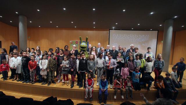 Mar Estopà, Mariona Moncasi i l’alumnat de 3r de l’Escola Pinyana, guanyadors del certamen que ha comptat amb la participació de 20 centres educatius
