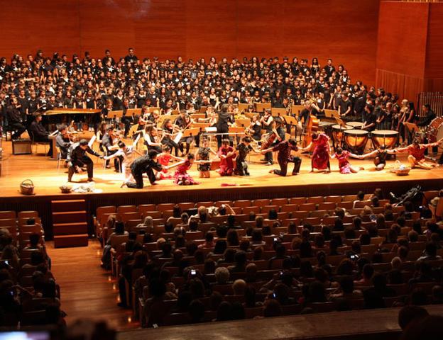 -Assaig general de la cantata El Flautista d’Hamelin, tots els cors i l'Orquestra Simfònica del Conservatori