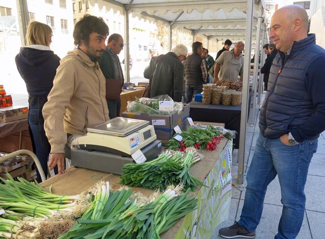 Rafael Peris ha visitat aquest diumenge les parades que han ofert els seus productes a la plaça de Sant Joan. Peris ha donat la benvinguda al mercat a Hortetviu-Ecologicus, la nova parada que s’hi ha incorporat. Els productors d’Hortetviu-Ecologicus són de la partida de Marimunt, a l’Horta de Lleida, i conreen fruita i verdura de temporada amb certificació del Consell Català de la Producció Agrària Agrícola.