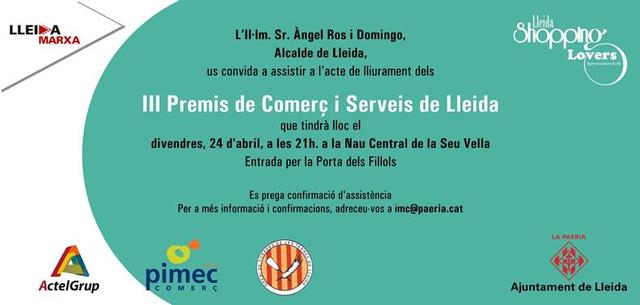 Lleida es vesteix de gala aquest divendres amb motiu de la celebració dels III Premis de Comerç i Serveis de Lleida que es celebraran per primera vegada a la Seu Vella. Els Premis de Comerç Ciutat de Lleida és una iniciativa impulsada per la Regidoria de Promoció Econòmica, Comerç i Consum de l’Ajuntament de Lleida que té per objectiu reconèixer l’activitat comercial de la ciutat. En aquesta edició dels guardons es reconeixeran vuit establiments històrics de la ciutat amb més de 50 anys d’activitat comercial i, un any més, la gala designarà el “comerç excel·lent 2015”.