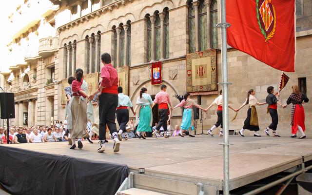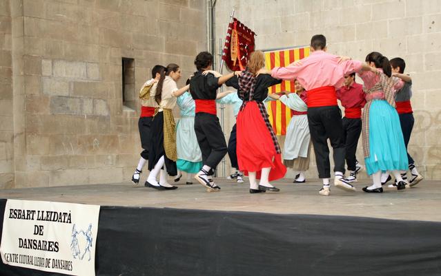 L’Esbart Lleidatà de Dansaires i l’Esbart Santa Llúcia de Reus han ofert aquesta tarda un espectacle de dansa catalana a la plaça de la Paeria amb motiu dels actes de la Festa Major de Maig 2015. La tinent d'alcalde i regidora de Cultura, Montse Parra, ha assistit a l'espectacle de balls populars i tradicionals que tenen l’objectiu d’apropar, de manera amena i divertida, la dansa al públic de totes les edats.