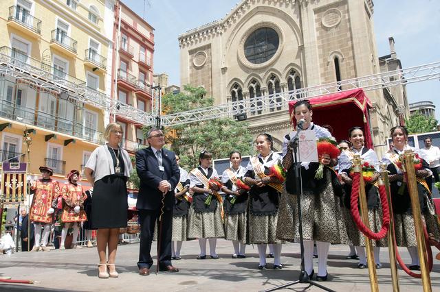Li segueixen el Ball de Bastons del Centre Cultural Lleidatà de Dansaires, el Ball de Moros i Cristians, els Bastoners del Pla de l’Aigua, el Ball de Cavallets, els Capgrossos i els Gegants de la Paeria, els Signífers i Penó, les Trampes, les Pubilles, la Cobla de Ministrers, la imatge del sant, el bisbe i les autoritats eclesiàstiques, els Macers, la Corporació Municipal, la Banda Municipal, l’Àliga del Grup Cultural Garrigues, els Castellers de Lleida, la Festa de Moros i Cristians, la FAV, diverses entitats de Cultura Popular i les Cases Regionals. A la plaça de Sant Joan, s’ha fet una ballada conjunt de tots els elements festiu. El bisbe de Lleida, acompanyat de l’alcalde i la tinent d’alcalde i regidora de Cultura, Montse Parra, ha saludat la ciutadania i l’ha convidada a gaudir de la festa, fent al·lusió a la convivència i l’harmonia.