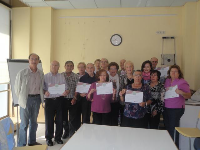 Socis de la Llar de Bonaire i de L’Ereta recullen els diplomes dels tallers impartits per voluntaris sènior