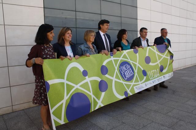 La regidora de Cultura, Montse Parra, juntament amb Miquel Àngel Cullerés, director dels Serveis Territorials d’Ensenyament a Lleida, Maribel Tost, directora del CaixaForum de Lleida, Josep Giralt, Director del Museu de Lleida, Josep Maria Solé i Sabaté, director de l’Institut d’Estudis Ilerdencs, Marina Masana, directora del Centre de Recursos Pedagògics del Segrià i Anna Jiménez, coordinadora de la Fira “Ciència al carrer”, han presentat l’edició de la Fira de “Ciència al Carrer 2015”, aquest matí al Museu de Lleida.
