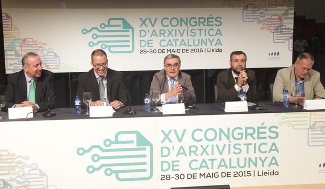 Àngel Ros, que ha destacat la importància d’aquesta cita per consolidar el lideratge de la ciutat i de la Llotja com a seu de congressos, ha presidit la inauguració juntament amb Joan Soler, president de l’Associació d’Arxivers-Gestors de Documents; Joan Pluma, director general d’Arxius, Biblioteques, Museus i Patrimoni; Àlex Pelach, director gerent del Consorci Administració Oberta de Catalunya i Joan M. Solé Sabaté, director de l’IEI.