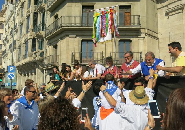 L’alcalde Ros ha imposat les insígnies amb el president de la Fecoll i els tinents d'alcalde Parra i Larrosa, després d’haver donat el tret de sortida a la cercavila dels collistes pels carrers de la ciutat