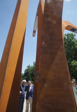 L’escultura de l’Arbre Paer, de Benet Rosell, ha quedat instal·lada avui a la plaça Bores. L’alcalde, Àngel Ros, i l’autor de l’obra han visitat la nova ubicació d’aquest “poema visual escultòric” que, des d’aquest punt, estableix un renovat diàleg amb la Seu Vella, la Paeria, l’Arc del Pont, els Camps Elisis i la canalització del riu Segre.