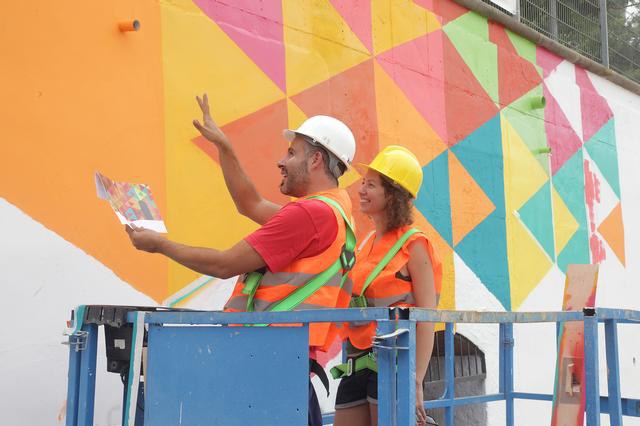 Avancen a bon ritme els treballs de pintura del mur de l’Avinguda de les Garrigues amb el carrer Juneda. El disseny l’han realitzat els alumnes de l’Escola Municipal d’Art Leandre Cristòfol i es preveu que durin tres setmanes.