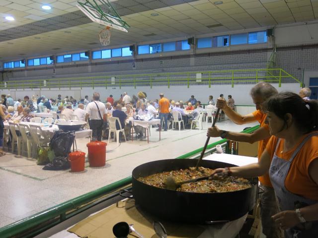 S'han cuinat 4 cassoles, amb la de l'entitat veïnal, que s’han repartit en el sopar popular, a l'interior del pavelló del barri