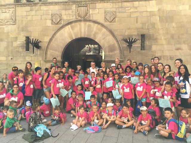 L’alcalde de Lleida, Àngel Ros, ha rebut a la Paeria una cinquantena de nens i nenes que participen aquests dies a les colònies d’estiu de l’Hangar de Magraners. Els infants han realitzat una gimcana per la ciutat, i han finalitzat els jocs a la Paeria, on se’ls ha fet entrega d’uns diplomes de participació.