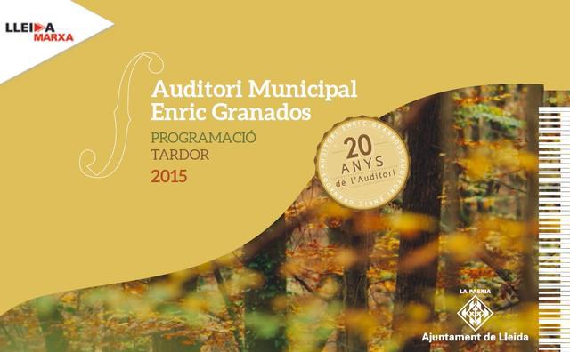 L’Auditori Municipal Enric Granados de Lleida ha posat a la venda les entrades i els abonaments de la nova temporada Tardor 2015. La nova programació s’emmarca en la celebració del vintè aniversari de l’equipament i pretén oferir una tardor plena d’activitats musicals diverses en el seu format i contingut. 16 concerts conformen el programa, que s’inicia el diumenge 27 de setembre. Les entrades es poden adquirir a la taquilla de l’Auditori de dilluns a divendres, de les 17.30 a les 20:30 h o mitjançant el web www.auditorienricgranados.cat. Aquesta temporada s’ofereixen tres tipus d’abonaments i també la possibilitat de personalitzar l’abonament escollint els concerts que més interessin a preus més econòmics.