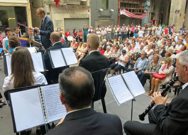 El paer en cap assisteix al tradicional concert a la plaça de la Paeria, en què la BML ha interpretat per primera vegada la Sardana de les Monges, d’Enric Morera, i ha acabat el repertori amb Els Segadors