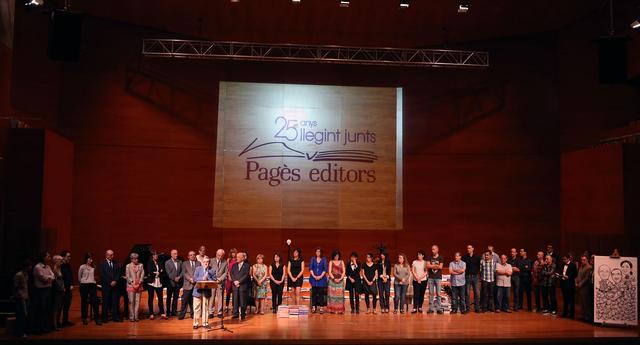 Un cop a l’escenari, Lluís Pagès ha compartit la seva emoció amb els assistents i ha fet un repàs per l’evolució de l’editorial. Alhora, ha demanat que l’acompanyessin els treballadors que han fet possible aquest projecte, amb 25 anys d’història.