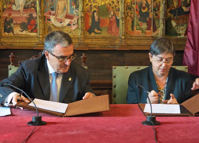 La signatura del conveni s’ha fet al Saló del Retaule de la Paeria, amb l’assistència de diversos regidors, així com dels membres de la Fecom, M. Rosa Armengol, i Ramon Fornós.