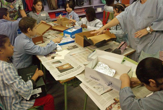 En aquest taller s’ensenya als nens de 3r i 4t de primària a reutilitzar diferents materials de rebuig per a construir jocs i joguines, potenciant la seva creativitat i imaginació, dins l’àmbit de l’educació visual i plàstica.