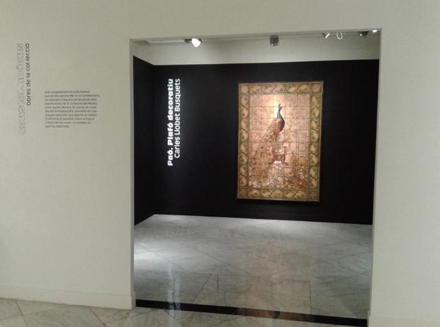 El plafó decoratiu Paó (c. 1900) constitueix un dels pocs testimonis que s’han conservat avui en dia de les rajoles d’imitació, un procediment inventat i patentat per l’industrial Hermenegildo Miralles, que permetia, gràcies a l’aplicació de les arts gràfiques, produir rajoles de cartró pedra que imitaven perfectament la ceràmica majòlica i que s’utilitzaren com una solució econòmica per a projectes decoratius d’interiors de tota mena. En aquest sentit, Llobet Busquets va elaborar dissenys per a les rajoles d’imitació de diferents estils, d’acord amb la moda de l’època (hispanoàrabs, majòliques castellanes i catalanes antigues, renaixentistes…) i amb els motius distintius del Modernisme, com el món floral o les aus del paradís —el paó va ser una de les més recurrents de la iconografia modernista internacional, estètica profundament influenciada per l’art japonès. L’acabat perfecte i la versatilitat d’aquestes rajoles van portar Llobet Busquets a col·laborar amb arquitectes de renom, com ara Josep Puig i Cadafalch, Antoni Gaudí o Andreu Audet, en la decoració interior d’alguns dels seus projectes de l’Eixample barceloní, construccions on totes les arts s’integraven en composicions summament ornamentades, fins al més mínim detall.