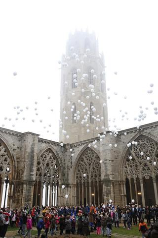 Un centenar d’alumnes de les Escoles Unesco de Lleida han fet enlairar globus blancs per fer una crida a la reflexió i sensibilització perquè es respectin aquests drets, que encara constitueixen un objectiu en la lluita per garantir una vida digna i lliure per a tothom
