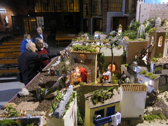 Ambdós muntatges acostumen a ser premiats en el concurs de l’Agrupació Ilerdenca.El paer en cap rep les explicacions del mestre pessebrista Virgilio del Olmo a l’església parroquial de la Mariola