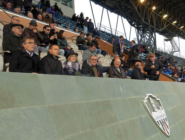 L’alcalde de Lleida, Àngel Ros, i la regidora d’Esports, Montse Parra, han animat els jugadors lleidatans des de la llotja de l’estadi, tot fent companyia la directiva de l’entitat blava.