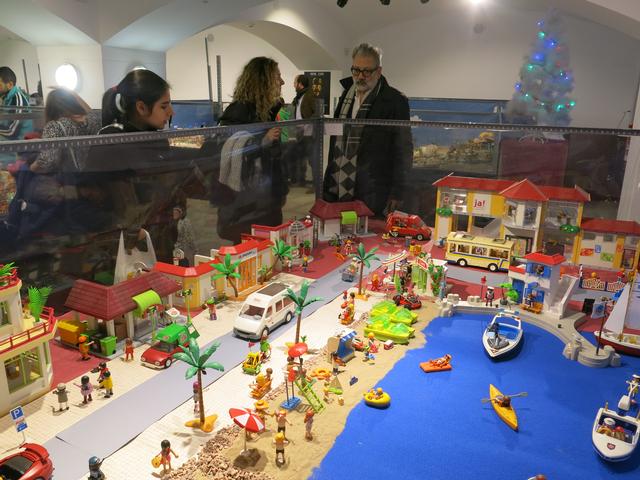 Els playmobils són unes joguines de gran èxit, amb les quals han jugat moltes generacions durant la seva infantesa. Estan fetes de plàstic i tenen uns 7,5 centímetres d’alçada. Des de la seva posada a la venda, se n’han venut més de 2.000 milions arreu del món. El material que es pot contemplar a l’exposició situada al Mercat del Pla és propietat de la Judith i en David (Ju & Jon), els quals presenten una col•lecció personal. En ella es poden veure els clàssics diorames de l’Oest, de l’època medieval o l’etapa Victoriana de 1900. Però també hi ha espai per poder contemplar escenes de fades, un zoològic, una ciutat moderna, esquimals i fins a onze escenes que ningú espera, amb objectes de col•leccionista, que amb el temps han anat incorporant els autors.