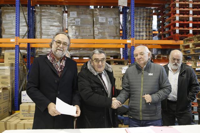 L’alcalde de Lleida, Àngel Ros, acompanyat del tinent d’alcalde i regidor de Polítiques per als Drets de les Persones, el Doctor Xavier Rodamilans, i el President del Banc dels Aliments, Joan Ramon Saura, han presidit avui la signatura d’un conveni de cessió d’ús d’una nau al Banc dels Aliments, situada al polígon NeoPark de Lleida. L’Ajuntament de Lleida paga el lloguer d’aquest local, que té una superfície de 803 m2 i suposarà gairebé duplicar la capacitat d’emmagatzematge respecte a la nau anterior.