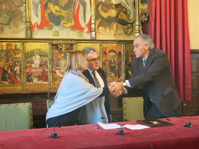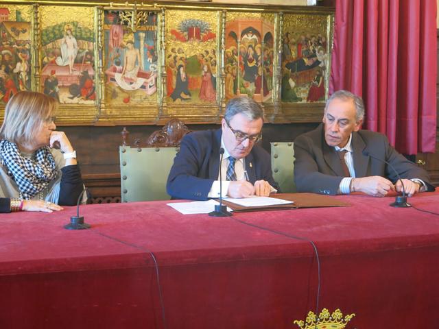 L’alcalde de Lleida i el president del club de bàsquet, Fèlix González, han signat un conveni plurianual fins al 2019, tal i com es va aprovar al Ple municipal. Ros ha destacat el funcionament del club en els àmbits de gestió, social i educatiu
