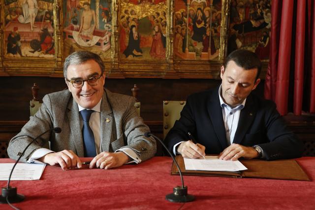L’alcalde de Lleida, Àngel Ros, i el president del Lleida Esportiu, Albert Esteve, han signat aquest divendres el conveni anual de col·laboració per al foment i la promoció del futbol a la ciutat, un acord que ratifica el suport de la Paeria al club i la bona tasca que realitza amb el futbol base.