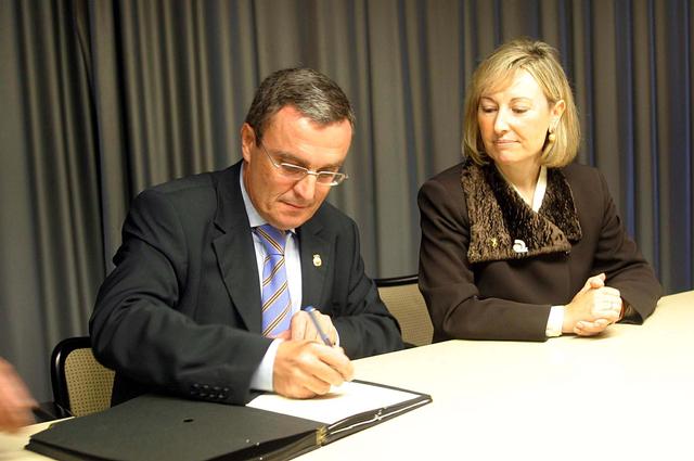 L'alcalde,Àngel Ros, i la Secretària d'Estat de Serveis Socials, famílies i discapacitat, Amparo Valcarce García, han signat un protocol general d'actuacions per a la realització de projectes d'obres d'accessibilitat a Lleida. L'acte ha tingut lloc diumenge, 24 d'octubre, en el marc de la cloenda la Fira Minusval i Gerontàlia. El Ministeri de Treball i Assumptes Socials, del qual depèn la Secretaria d'Estat, ha dut a terme diversos programes per a l'eliminació de barreres arquitectòniques i per millorar l'accessibilitat amb l'objectiu de facilitar la mobilitat de les persones amb discapacitats i, en definitiva, de millorar la qualitat de vida de les persones. Uns objectius que sintonitzen amb la política de l'Ajuntament de Lleida que aplica diverses mesures d'integració social de les persones afectades per algun tipus de discapacitat, per mitjà de l'execució d'obres de supresió de barreres arquitectòniques, urbanístiques i de la comunicació. El document signat avui acorda coordinar actuacions i establir criteris de cooperació i estableix un marc de col.laboració financera entre la Paeria, la Fundació ONCE i l'Instituto de Mayores y Servicios Sociales (IMSERSO). L'aportació econòmica de totes les parts serà de 52.938,09 Euros.