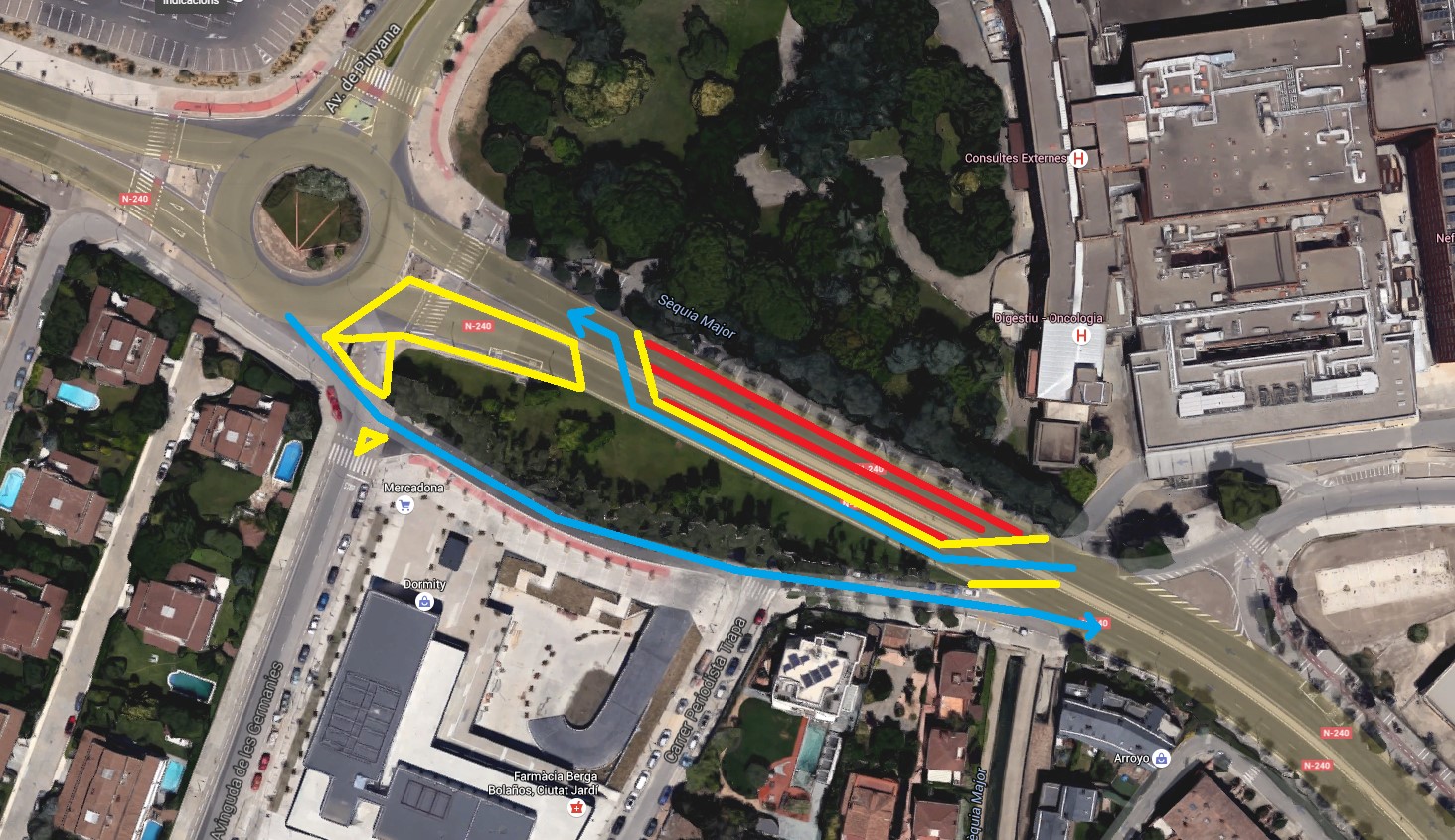Pel que fa als vehicles en sentit entrada a Lleida, es mantindrà només un carril que haurà de circular pel vial laterial d’Alcalde Rovira Roure, un fet que estarà degudament senyalitzat. Es manté el desviament actual per la calçada esquerra per als vehicles que circulin en sentit sortida de Lleida. D’altra banda, els vehicles no podran accedir a la rotonda des de l’Avinguda Germanies, hauran de girar cap a la dreta pel vial lateral d’alcalde Rovira Roure.