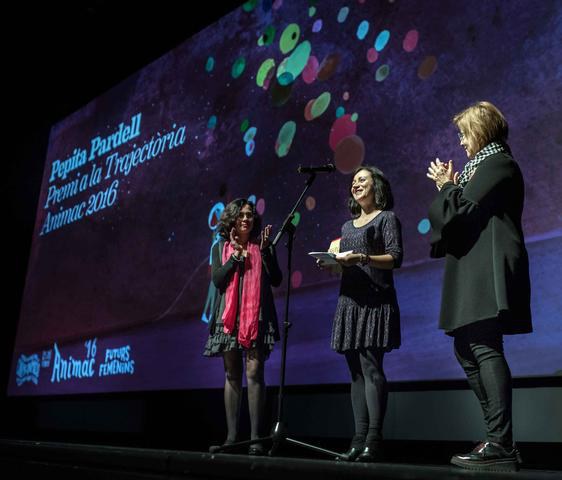 Duran l’acte de cloenda, que s’ha fet a La Llotja, la tinent d’alcalde i regidora de Cultura, Montse Parra, i la directora de la mostra, Carolina López, han lliurat els premis de la mostra, essent el més emotiu el dedicat a la il·lustradora catalana Pepita Pardell, per la seva trajectòria, després de 70 anys en el món de l’animació.