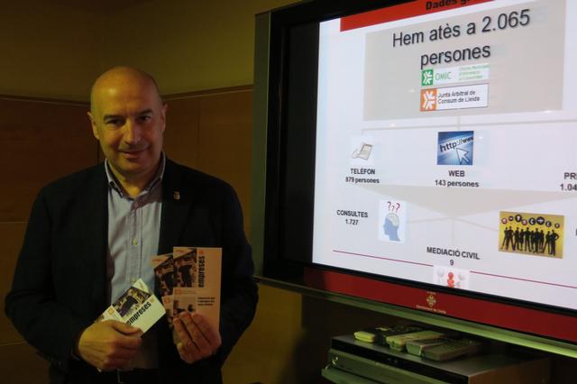 L’Ajuntament de Lleida, a través de la Regidoria de Promoció de la Ciutat, del Comerç, del Turisme i de L’Ocupació i l’Emprenedoria, ha donat a conèixer avui, amb motiu del Dia Mundial del Consumidor, la Memòria de Serveis de Consum 2015 de l’Oficina Municipal d’Atenció al Consumidor i la Junta Arbitral de Consum, en què es van atendre 2.065 persones que van generar un total de 347 reclamacions relacionades amb temes de consum. Del total d’atencions ciutadanes, 1.043 han estat de manera presencial, 143 via web i 879 via telefònica.