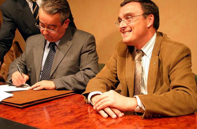 L’alcalde Àngel Ros i Primitivo Borjabad, en representació de la Fundació Privada Escola de Relacions Laborals, han signat avui un conveni per tal de col·laborar en el trasllat d’aquest centre a unes dependències de l’edifici de la Creu Roja, al carrer d’Henry Dunant 1.