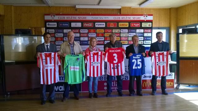 A la presentació han assistit el diputat de la Diputació de Lleida, Paco Cerdà; el president de l’At. Segre, Ramon Farrús; el vicepresident, Josep Antoni Subirà; i els representants de les dues noves empreses que col·laboraran amb el club.