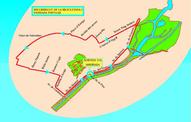 El punt de sortida d'aquesta activitat serà la plaça de la Pau, a les 11h. El recorregut serà Avinguda del Segre, Avinguda de Tortosa, Avinguda de Pearson, Xavier Puig Andreu, Comtes d'Urgell, Josep Pla, Alcalde Recasens, Plaça d'Europa, Onze de Setembre, Henry Dunant, Bisbe Irurita, Ramon i Cajal, Rambla d'Aragó, Avinguda de Catalunya i Avinguda de Madrid.
