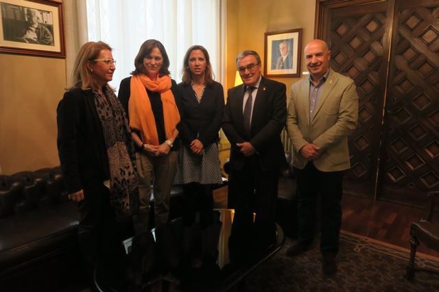 L’alcalde de Lleida, Àngel Ros, juntament amb el tinent d’alcalde i regidor de Promoció de la Ciutat, del Comerç, del Turisme i de l’Ocupació i l’Emprenedoria, Rafael Peris, ha saludat avui a la Paeria la directora general de Comerç de la Generalitat, Muntsa Vilalta, amb qui han mantingut una reunió de treball.