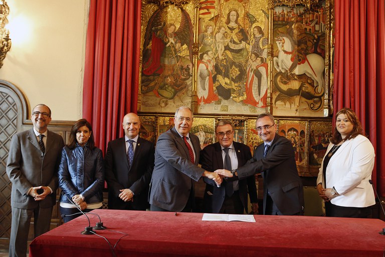 L’alcalde de Lleida, Àngel Ros, ha presidit l’acte de signatura del conveni que permetrà desenvolupar projectes conjunts i crear sinèrgies