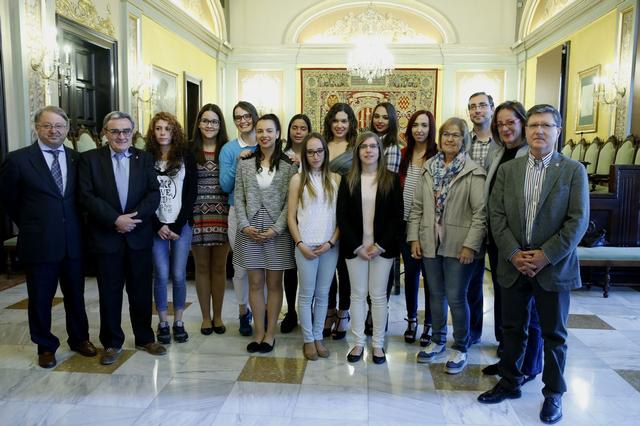 L’alcalde de Lleida, Àngel Ros, acompanyat de la tinenta d’alcalde i regidora de Polítiques a Favor de la Creativitat, la Cultura, l’Educació i els Esports, Montse Parra, ha rebut oficialment aquesta tarda a la Paeria les joves que aquest any exerciran de Pubilles durant la Festa Major de Maig.