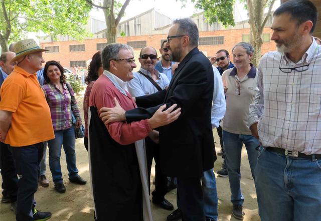 Tot seguit, el paer en cap també ha saludat al diputat al Congrés d’En Comú Podem i dirigent d’Iniciativa per Catalunya, Josep Vendrell, i a la senadora parlamentària de Catalunya Sí que es Pot, Sara Vila, que acabaven d’arribar a l’Aplec.