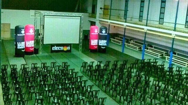 Tot a punt per seguir el partit del Lleida amb el Real Madrid Castilla a través de la pantalla gegant del pavelló de l’Antorxa