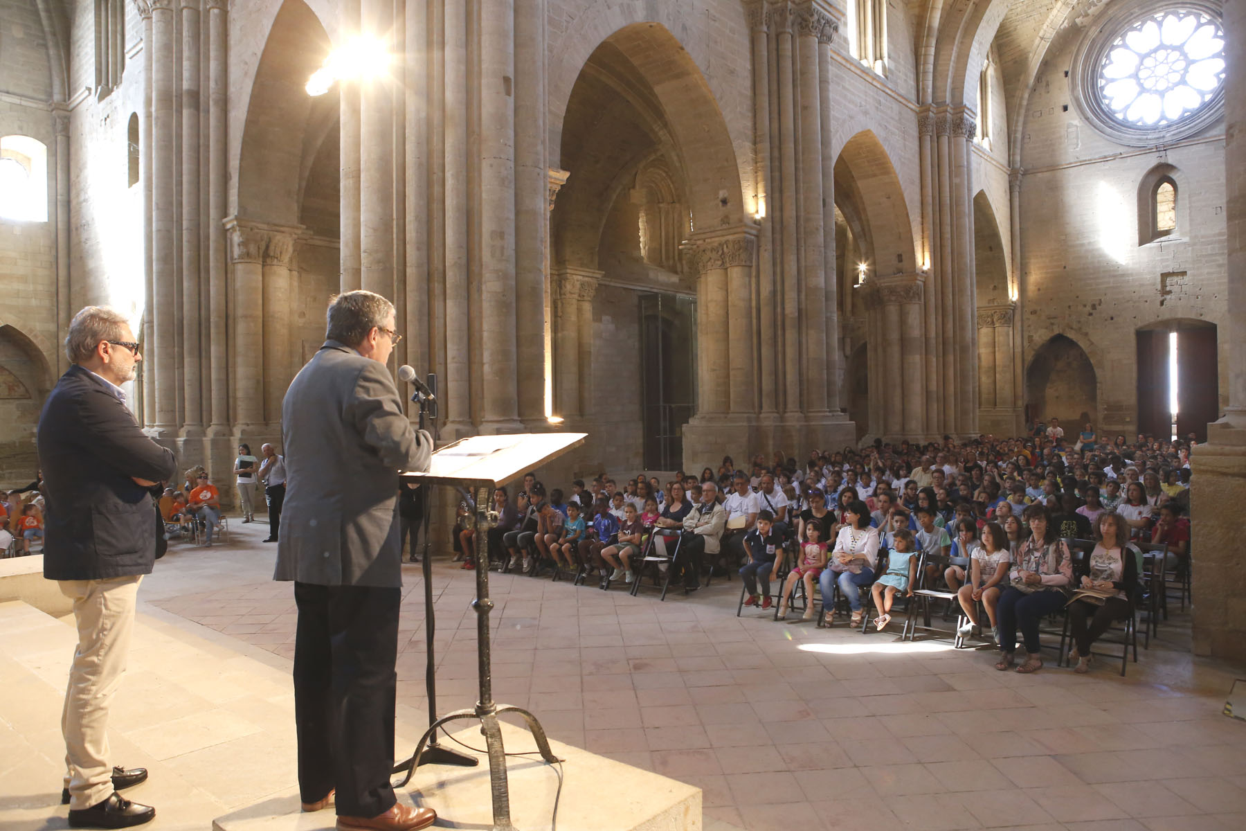 L’alcalde de Lleida, Àngel Ros, acompanyat del tinent d’alcalde i regidor d’Hàbitat Urbà, Rural i la Sostenibilitat, Fèlix Larrosa, ha presidit l’acte de cloenda i ha felicitat les escoles participants per implicar-se en un programa formatiu que tramet valors com el civisme i la convivència, valors ambientals i, també, de respecte a l’entorn. El paer en cap, Àngel Ros, ha destacat que “des de la Seu Vella trametem el valor d’estimar la natura arreu del món i, amb aquest acte de l’Agenda 21 Escolar, contribuïm a ser patrimoni mundial de la Unesco”. Ros també ha recordat, finalment, que la Seu Vella ha estat escollida recentment com a monument favorit de Catalunya. Per la seva banda, Fèlix Larrosa ha agraït la implicació de tots els participants i ha remarcat la iniciativa dels boscos urbans que s’estan portant a terme en diversos barris de Lleida amb l’objectiu de fer una ciutat més verda, sostenible i agradable.