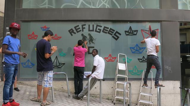 Els joves de La Palma decoren l’espai amb el lema “Refugees Welcome”