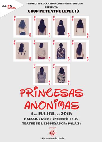 Un grup de noies joves dels barris de Cappont, Magraners i Centre Històric representaran el divendres 1 de juliol l’obra de teatre musical “Princeses Anònimes” a la sala 2 del Teatre Municipal de l’Escorxador. L’activitat s’emmarca en el Projecte Educatiu Municipal d’Entorn de la zona 4 (dels barris esmentats), un projecte que se centra en la detecció de necessitats i la promoció de la infància i l’adolescència per donar resposta integrada a les demandes educatives, tenint com a població principal els infants, els adolescents i els joves que viuen una situació de risc.