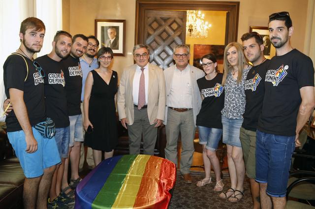 L’alcalde de Lleida, Àngel Ros, acompanyat del tinent d’alcalde i regidor de Participació Ciutadana, Drets Civils i Cooperació, Joan Gómez, han rebut avui a la Paeria l’entitat Colors de Ponent, amb motiu del Dia Internacional de l’Orgull Gay-LGTBIQ. Durant la recepció, l’entitat ha explicat quins són els seus objectius i el treball que fan en els àmbits de la socialització, la visibilització, la reivindicació i el suport al col·lectiu.