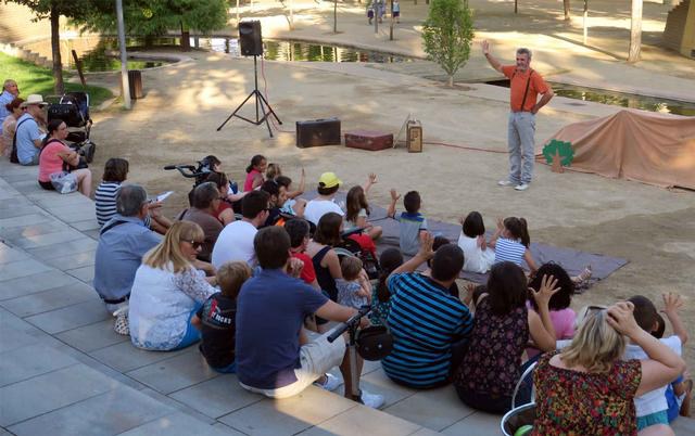 Aquesta tarda ha estat el torn de Joan Domingo, qui ha explicat contes petits a la mainada que s’ha aplegat en aquest indret del parc. Totes les actuacions estan programades per tres quarts de 8 de la tarda.
