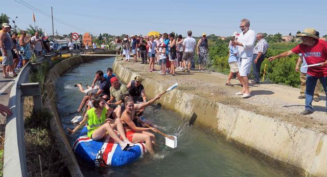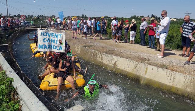 L’aigua, l’animació i unes originals embarcacions han estat els principals protagonistes de la 27a edició del descens per la séquia major del Canal de Pinyana a la partida del Camí de Montcada. Enguany, hi han participat un total de vuit 'vaixells', tots fets artesanalment, per poder fer la travessia aquàtica.
