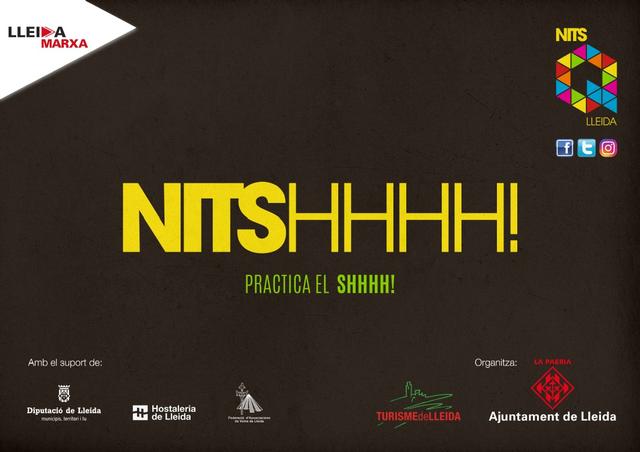 L’Ajuntament de Lleida, a través del programa d’oci nocturn Nits Q Lleida, i amb la col·laboració de diferents entitats i locals d’oci de la ciutat, continua impulsant la campanya de sensibilització sobre la convivència i el civisme en els espais d’oci. Sota el lema “NITSHHHH. Practica el Shhhhh” s’estan duent a terme diferents activitats per les zones de la ciutat que durant l’estiu tenen més afluència de locals d’oci i terrasses, per promoure una actitud cívica entre les persones que surten de festa i sensibilitzar envers les molèsties que es poden generar en aquests espais.