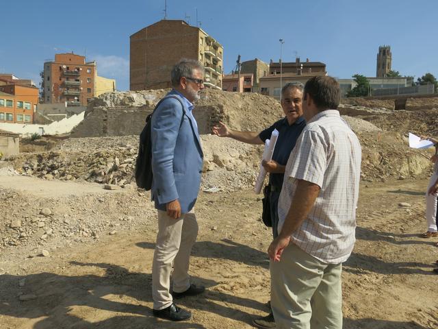 L’alcalde accidental i regidor del Centre Històric, Fèlix Larrosa, acompanyat de diversos tècnics municipals, ha visitat avui l’avenç de les obres de la recuperació de l’antic Call Jueu situat al Centre Històric de Lleida. Larrosa ha destacat que durant els treballs de precisió dels límits de l’actuació han aparegut restes de la fonamentació de l’edifici de l’antic Seminari, que daten del segle XVIII, i, també, restes del sistema de clavegueram del Call Jueu, del segle XIV.
