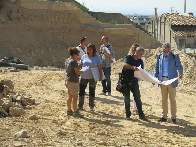 Cal destacar que el gruix dels treballs per implementar les instal·lacions generals bàsiques, que s’han soterrat, ja han finalitzat. En aquests moments s’han iniciat els moviments de terres per a la configuració de la topografia definitiva per una seqüència de plataformes que interpreten un territori suport de les diferents trames urbanes al llarg de la història. Aquestes plataformes es basteixen a partir d’unes contencions que salven els diferents desnivells, conformades a base de taulons de fusta.